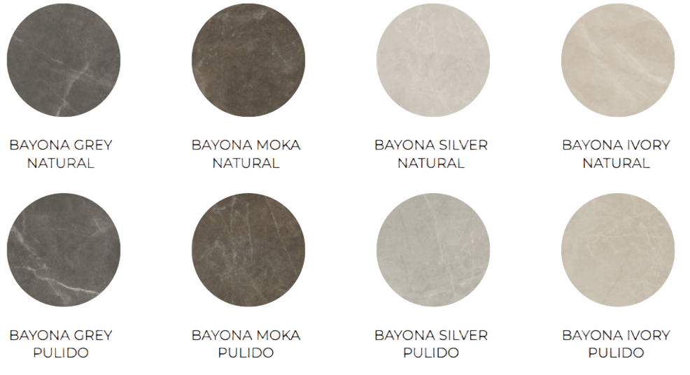 Designed to adapt to every room and requirement, the collection is available in a wide range of sizes, including large-format porcelain slabs for minimal grout lines and expansive visual continuity. Bayona is offered in both a radiant Polished (Pulido) finish that enhances light and opulence, and a subtle Natural finish for areas requiring greater grip and a grounded feel. This dual-finish, multi-size approach ensures Bayona is ideal for creating cohesive designs across bathrooms, kitchens, living areas, and high-traffic commercial environments.
