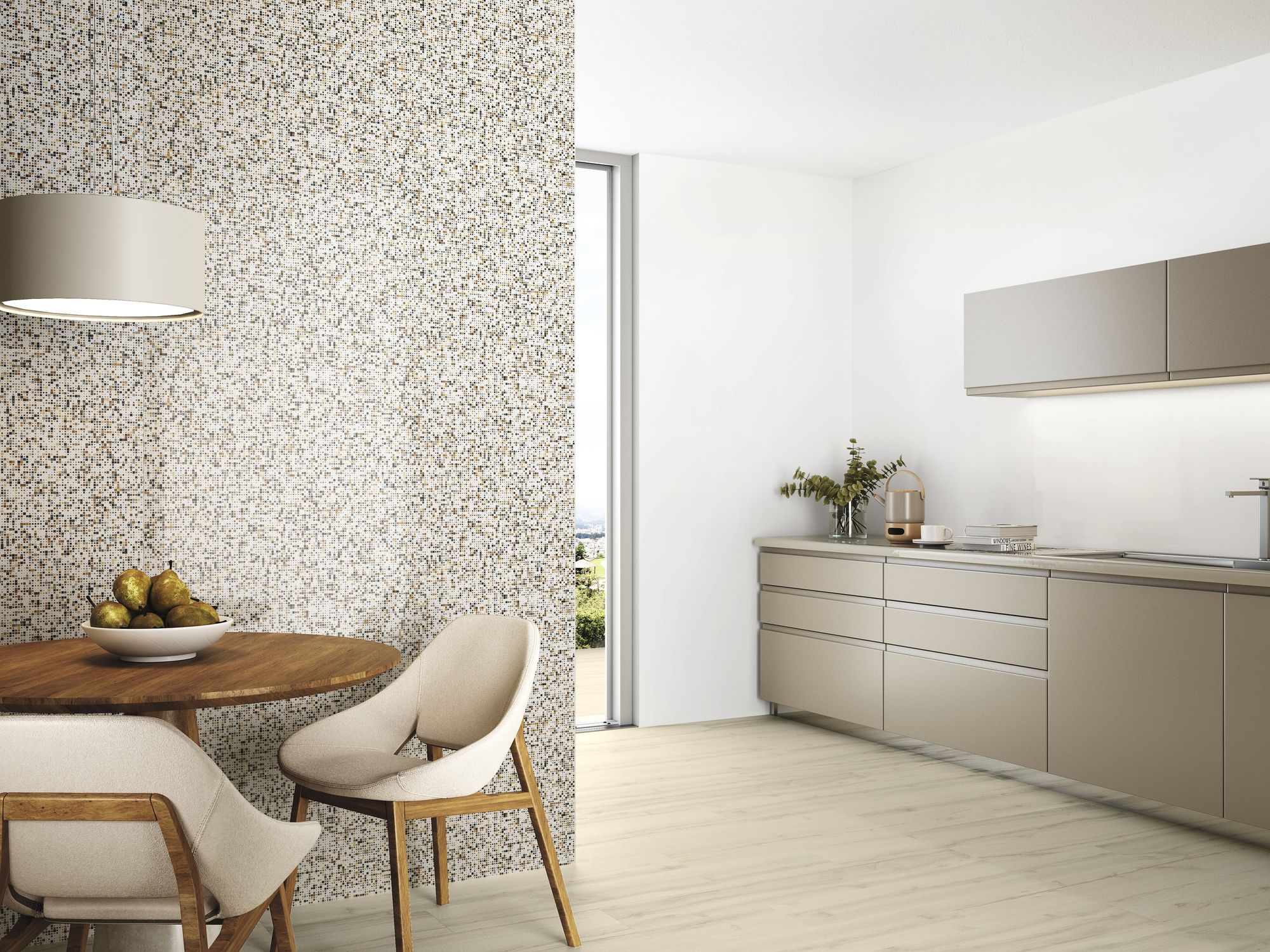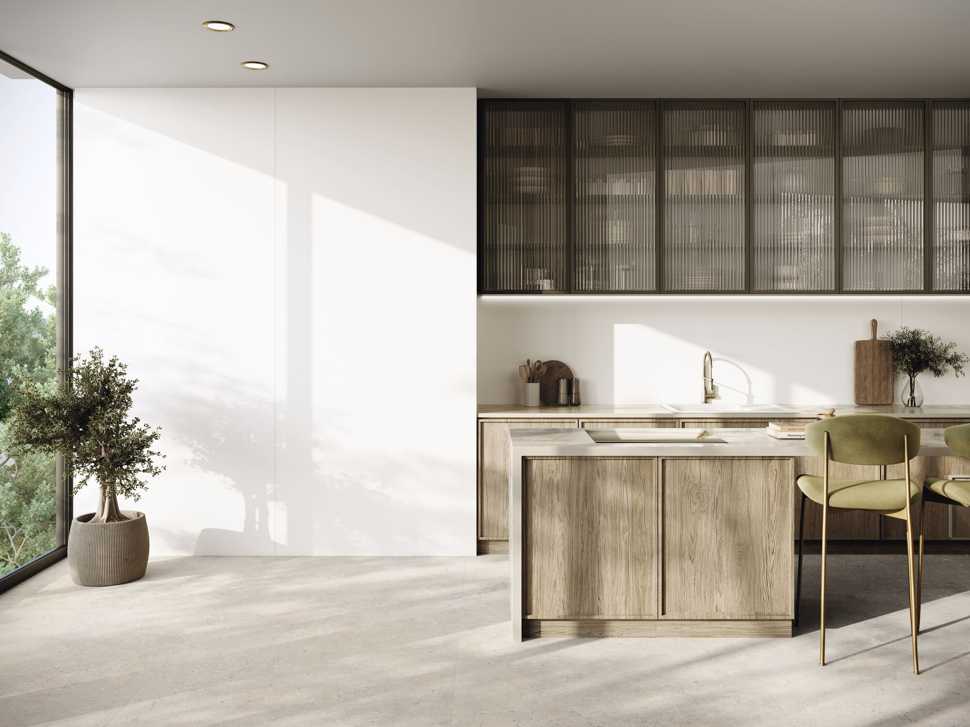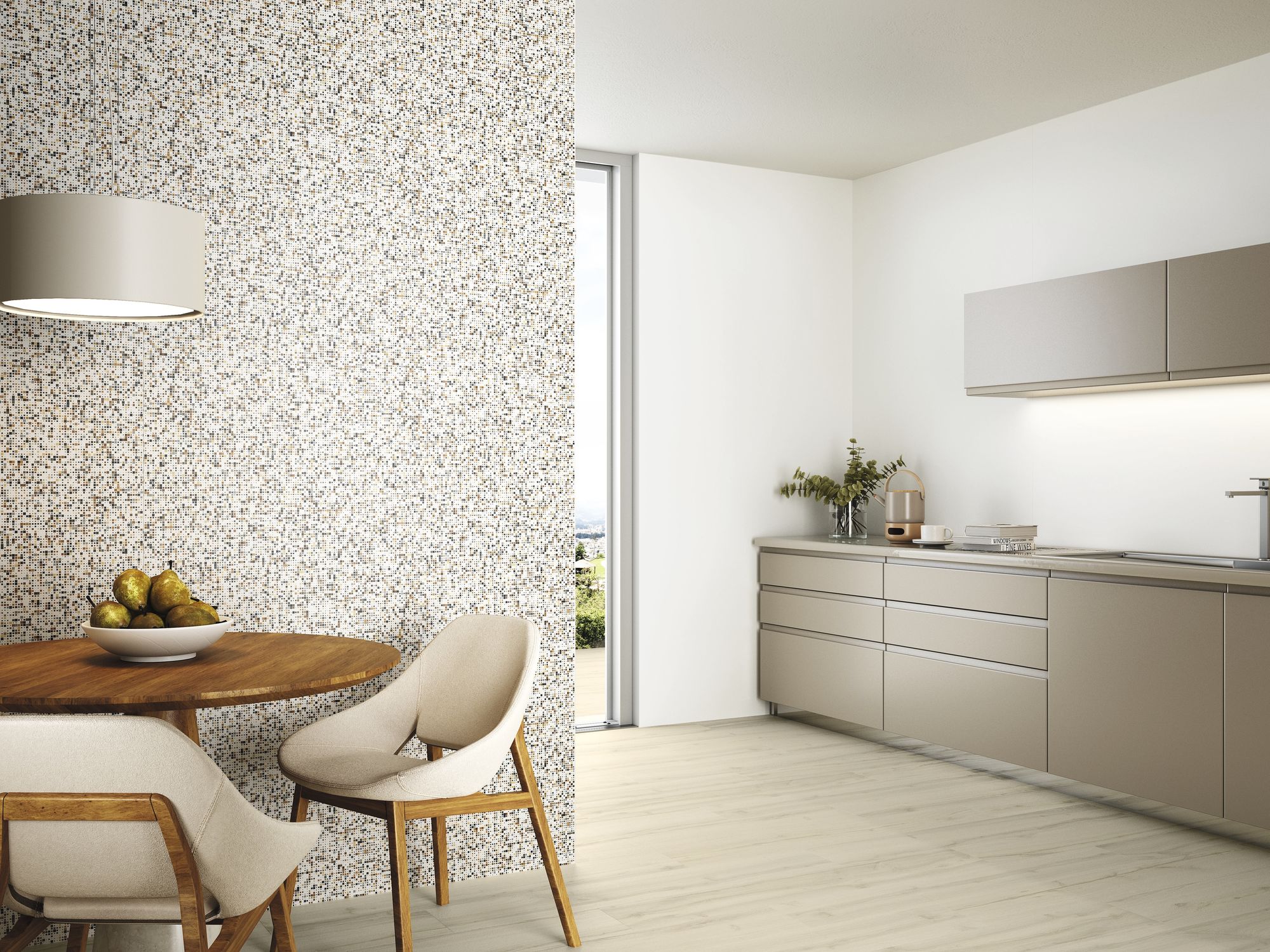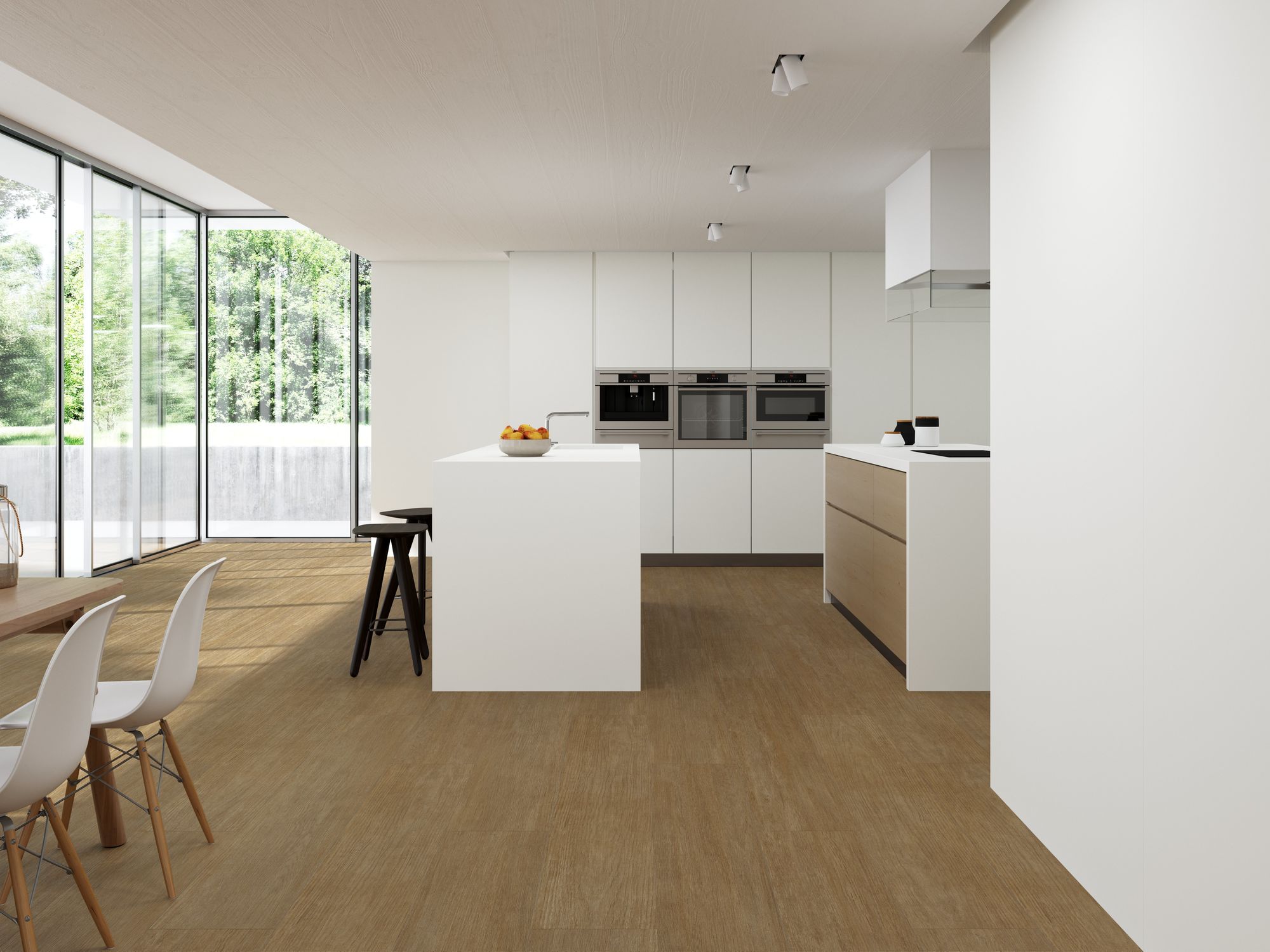 The Blanco Collection is a sophisticated range of white tiles designed to bring light, spaciousness, and contemporary elegance to any interior space. This versatile collection features both smooth, large-format field tiles and a complementary textured decor, allowing for dynamic and cohesive design schemes in bathrooms, living areas, and kitchens. The foundation of the collection is the plain white tile, offered in various large formats such as 120×120 cm (seen as flooring in the living room) and the smaller, versatile 30×60 cm. These tiles feature a clean, bright white tone and a subtle finish, perfect for creating seamless, minimalist backdrops that amplify natural light.
