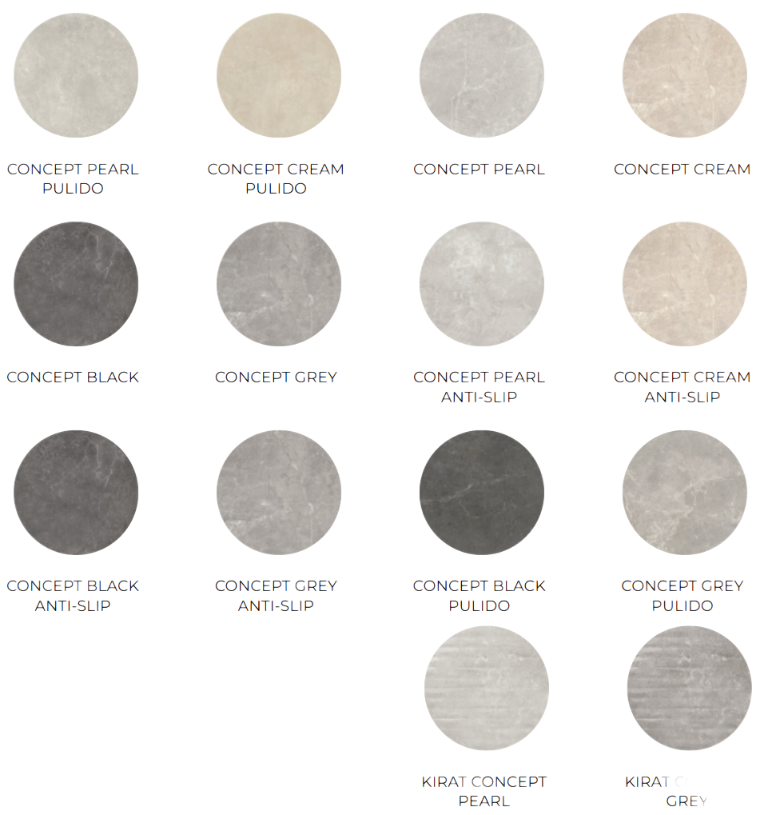 The Concept collection is a sleek and minimalist line of porcelain tiles designed to embody the raw, sophisticated aesthetic of modern architectural concrete. It features a refined, subtle texture that mimics the look of fine-grain cement, presented in a versatile palette of cool neutral tones, including light, airy off-white/pale grey and deeper, warmer dark greys/taupe. With impressive large format sizes up to 260×120 cm slabs, the collection is perfect for creating expansive, monolithic surfaces on both floors and walls, minimizing grout lines for an exceptionally clean and contemporary finish in spaces like bathrooms, kitchens, and open-plan living areas.