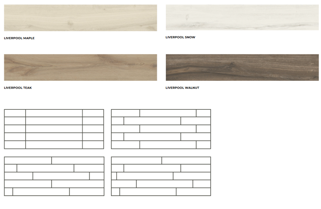 The Liverpool Collection is a sophisticated wood-look tile series designed to bring the timeless elegance and natural warmth of various timber species into any space, with the superior durability of porcelain. Available in a realistic plank format, the collection offers a broad spectrum of colors, from the light, airy Liverpool Maple and whitewashed Liverpool Snow, to the classic mid-brown Liverpool Teak, and the deep, rich Liverpool Walnut. Each color features realistic wood grain detailing, knots, and subtle color variations, ensuring an authentic and inviting floor that is perfectly suited for continuous installation throughout modern homes and high-traffic commercial settings.