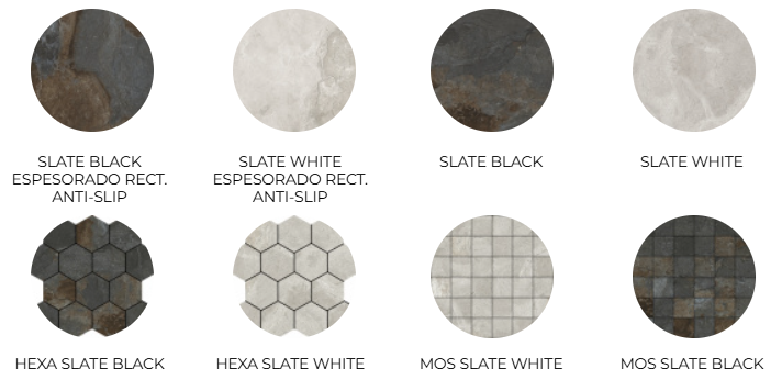 Presented in versatile rectangular formats, the Slate Collection is perfect for creating striking, grounded environments on both floors and walls. The dark, intense color palette and dimensional texture provide a bold backdrop, making it an ideal choice for high-end residential and commercial spaces seeking an impactful yet timeless aesthetic. With the superior durability of porcelain, this collection delivers the sought-after strength and moody character of natural stone without the maintenance requirements.